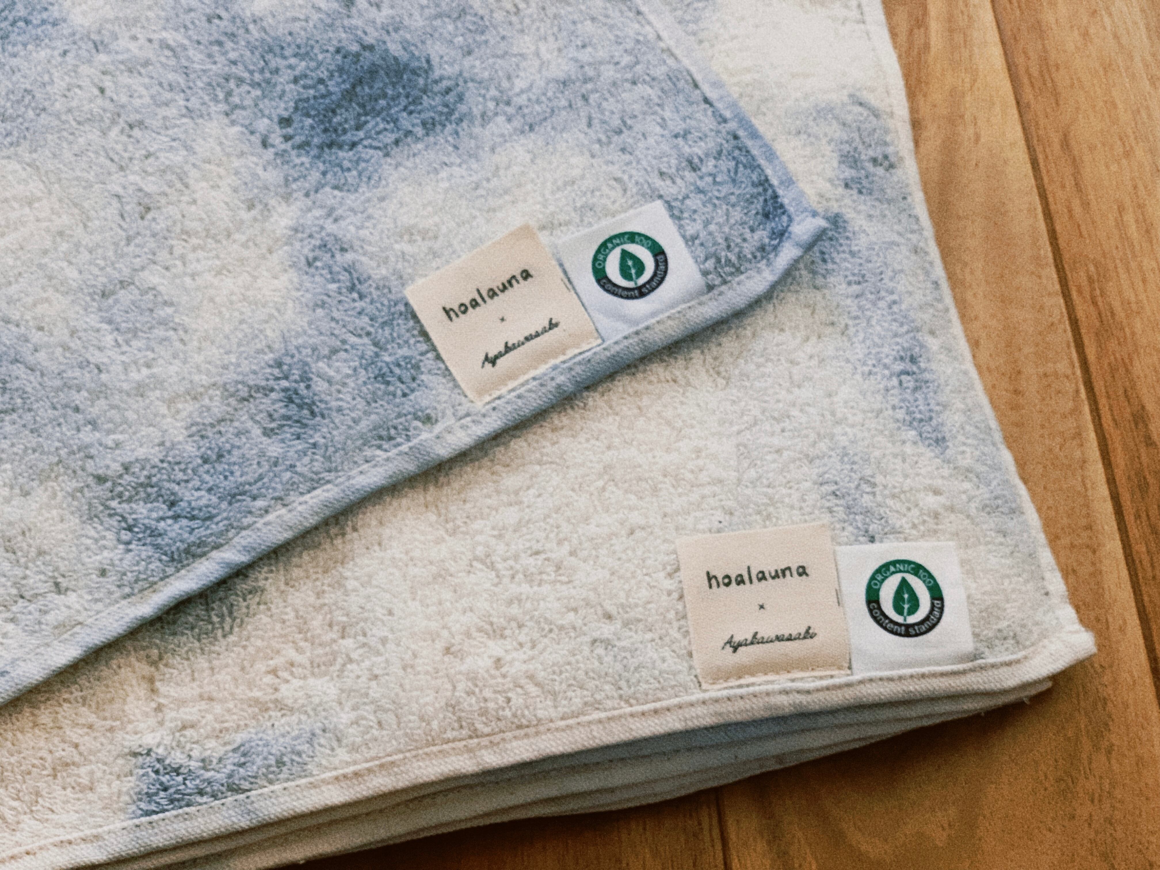 OPEN限定500円off 世界にひとつの私のタオル〜 ORGANIC COTTON 100% water blue